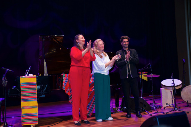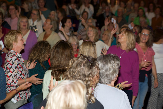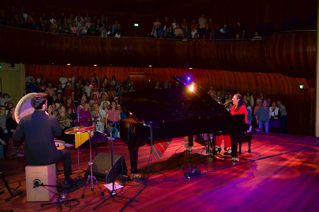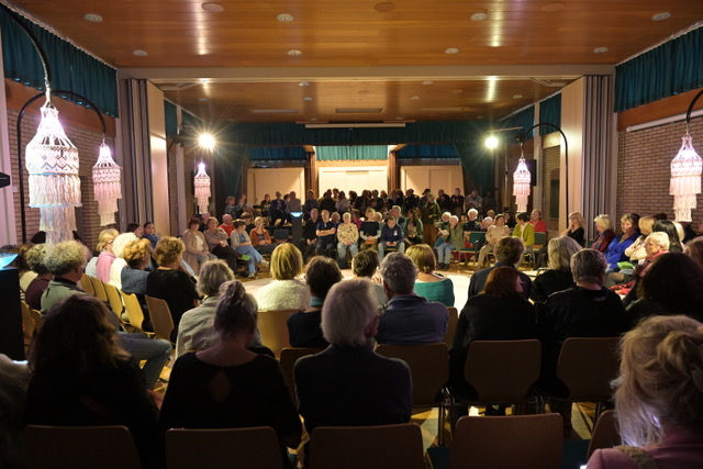 Dit meezingconcert was het laatste van een drieluik van zangbijeenkomsten die eerder door Yvonne Moonen in Haarlem en Bloemendaal werden georganiseerd. Dit keer als onderdeel van de Vredesweek en in een zaal van de Phil met meer dan 250 (vooral) vrouwen! Onder leiding van zangeres en stembevrijder Charo Durán aan de vleugel met percussionist Pouriya Jaberi werd er enthousiast en uit volle borst meegezongen en soms gedanst. Tussen de eenvoudige liederen door moedigde Charo iedereen aan om vrede te voelen met jezelf, met je dierbaren, met je directe omgeving en met de grote wereld, waar zoveel aan de hand is. Om ook aandacht te hebben voor je kleine irritaties, ook het donkere in te sluiten.